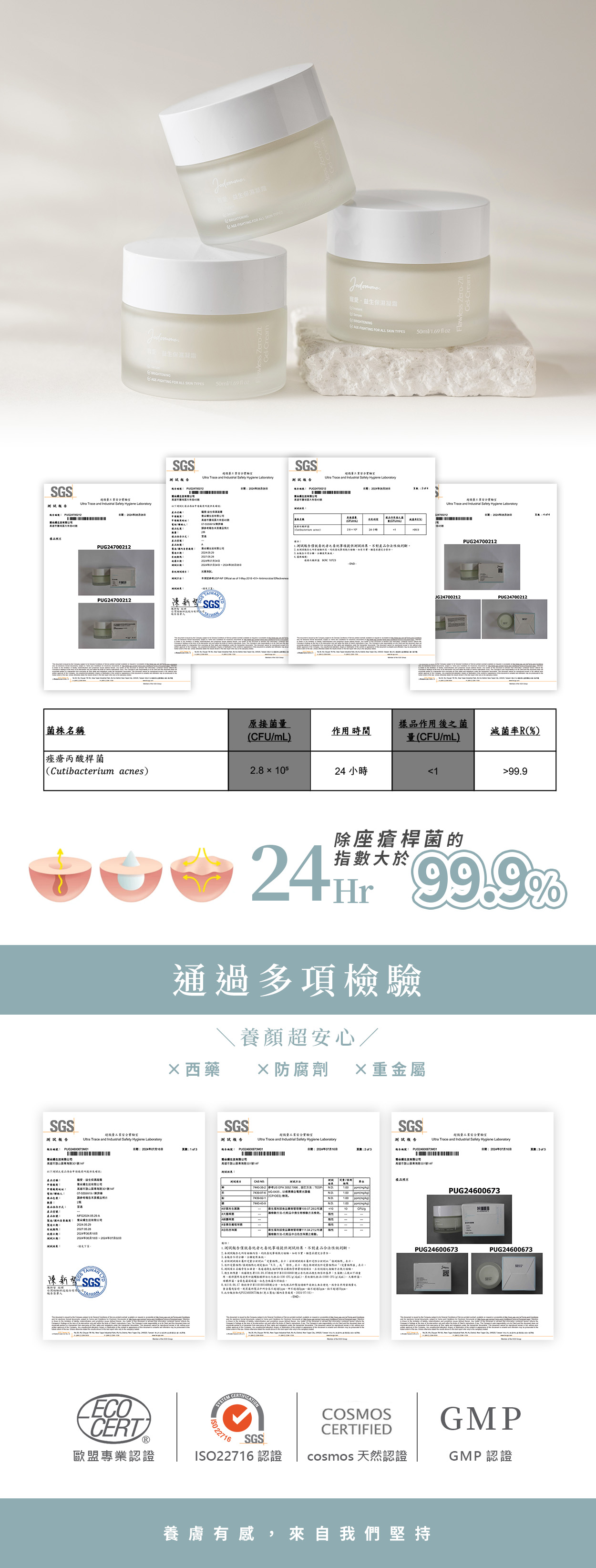 ・通過國際檢驗認證抑制座瘡桿菌>99.9%
