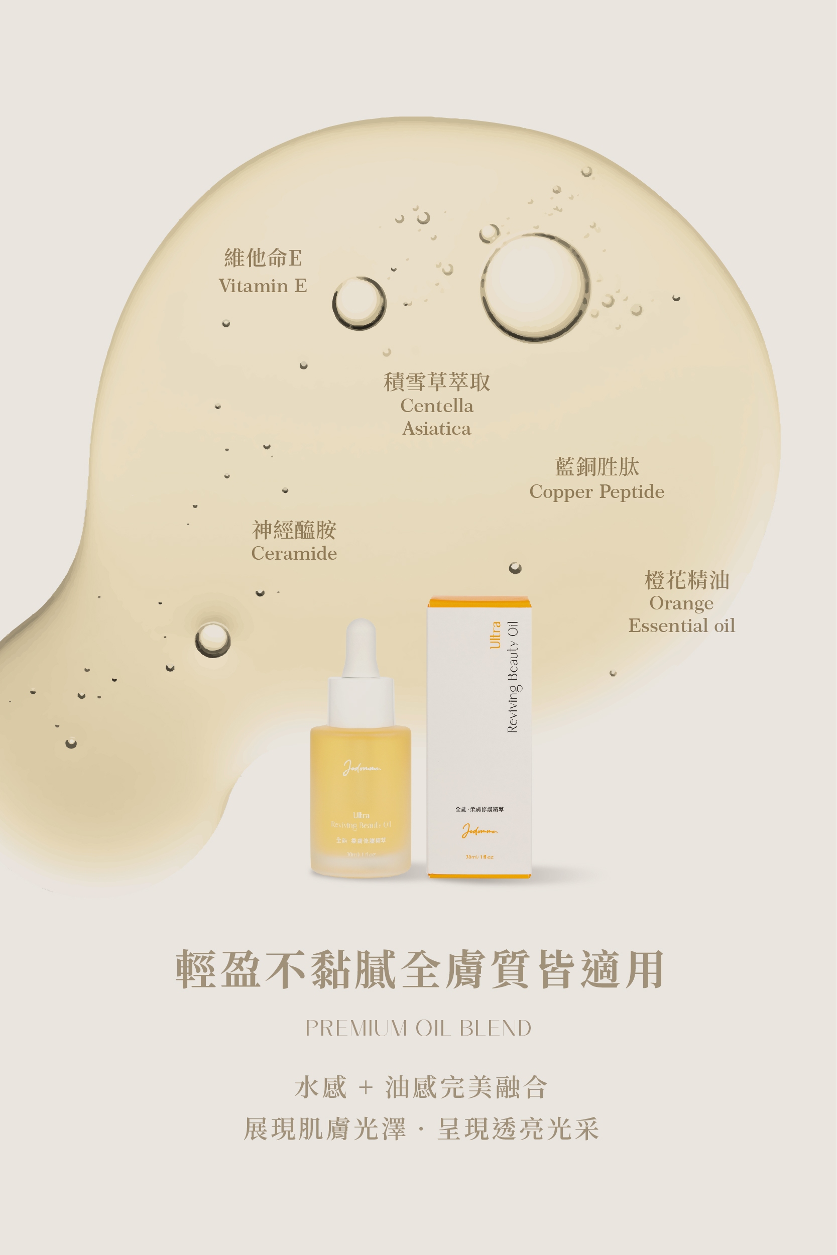 潤澤卻不油膩,分子小,3秒吸收