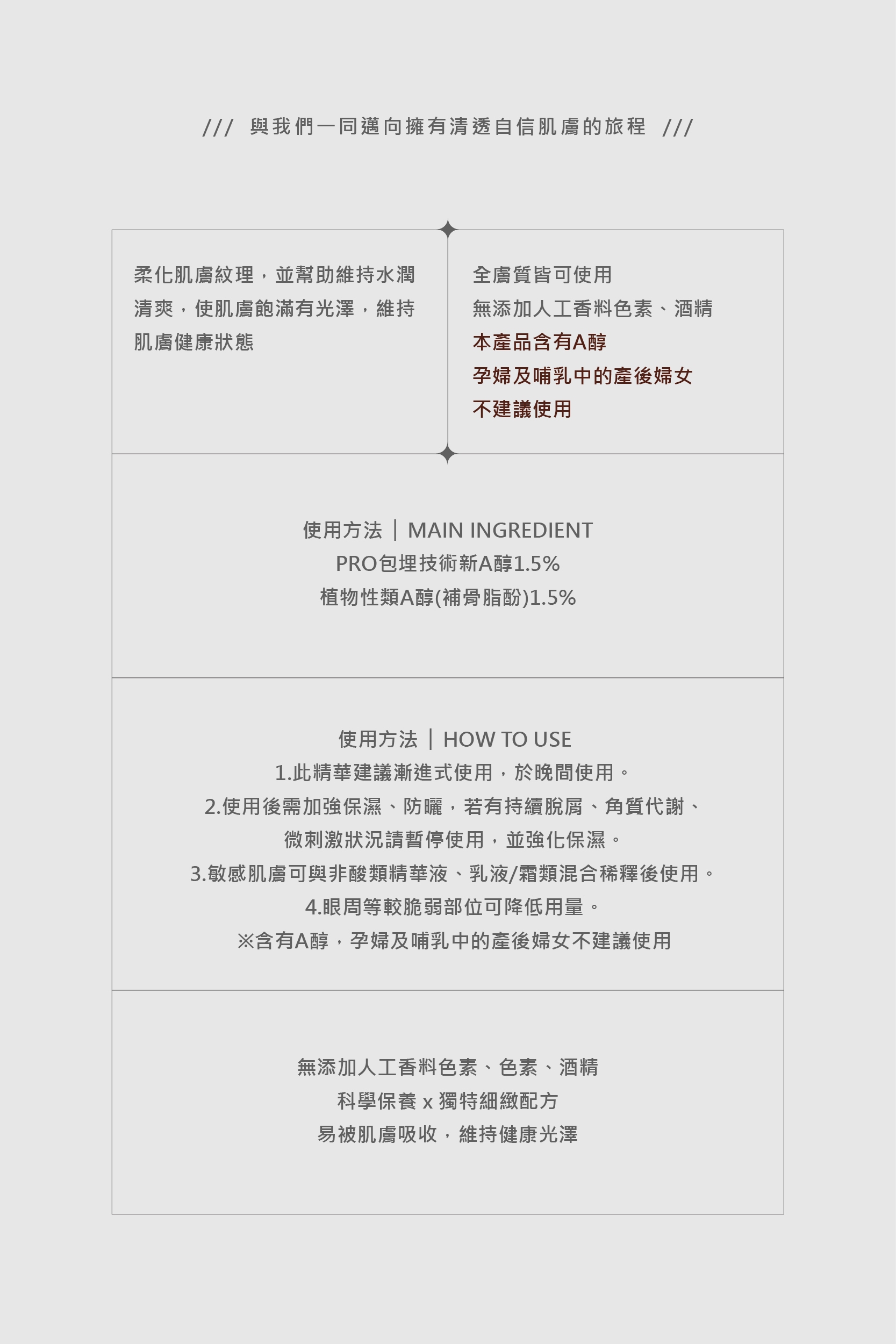 全成分零酒精、零雌激素、零paraben防腐劑等有害成分