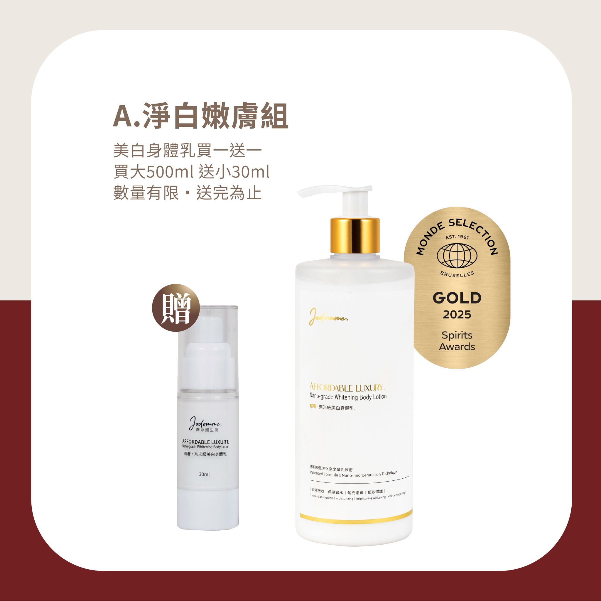 贈- 30ml輕奢·奈米級美白身體乳旅行瓶(市值$1800)